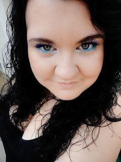 Happy Saturday my Makeup Junkies! I love this makeup look! it was super fun to put together and i got quite a few compliments on it! I started off using a white sticky base so the eyeshadows would adhere I used a yellow,orange and red for the lid and a purple for the crease and i took a blue eyeshadow and put it on the lower lashline